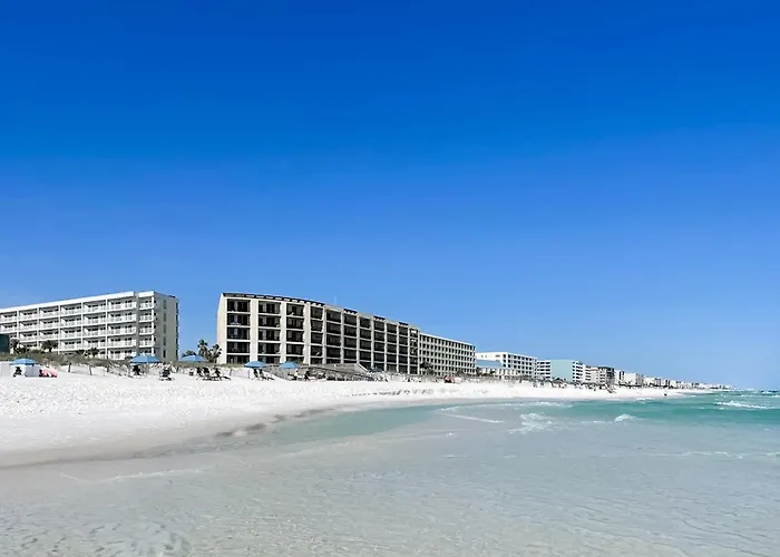 The beachfront Sea Oats Villa offers swift access to Emerald Coast Convention Center, which is about 11 minutes' walk away. Overlooking the pool, the accommodation features a kitchen with a microwave oven, a refrigerator, and kitchenware.
